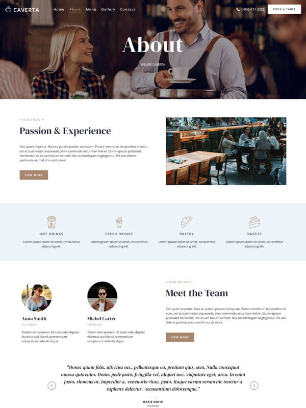 „Literally the best wp theme I ever worked with. The design is just stunning and works great out of the box. We could setup a whole catering website with minimal effort.