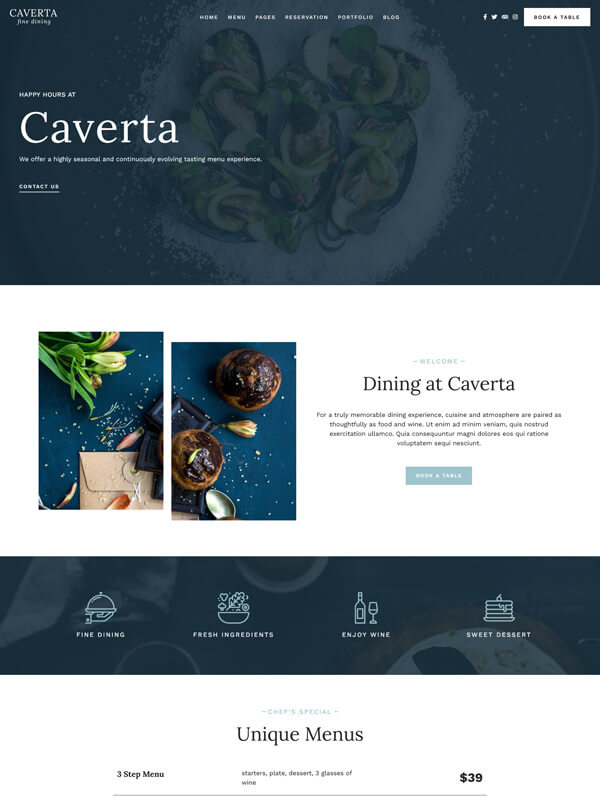 A WordPress restaurant theme excellent choice for restaurants, cafes, bars and other food businesses looking to establish an online presence.