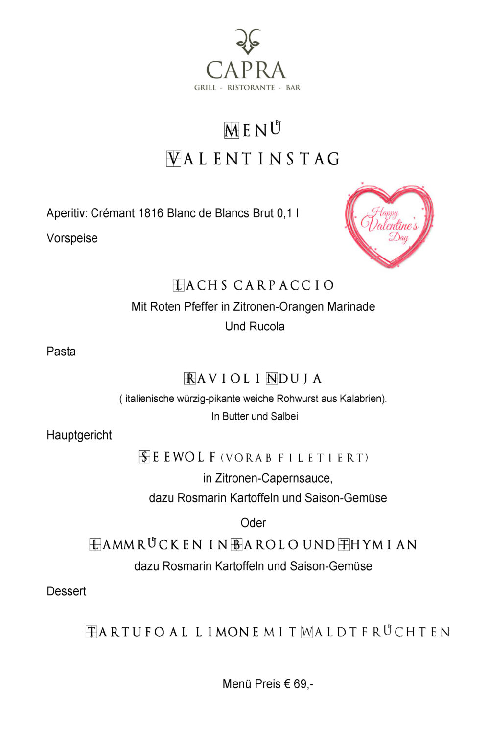 Unser Menü zum Valentinstag